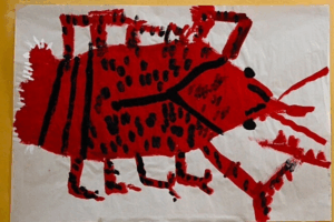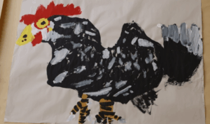 保育時間にチャボやザリガニなど生き物の絵を描く時には、実物をよく観察してから絵を描きます。なので、とても躍動感のある絵を描くことができます。