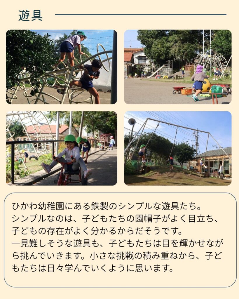 ひかわ幼稚園には、昔から変わらない遊具が今もいくつか残っています。