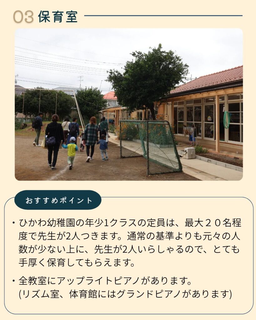 先生方も、長年ひかわ幼稚園にお勤めされている方や、自分の子どもがひかわ幼稚園に通っていて、それから先生になった方や、自分がひかわ幼稚園に通っていた方など、ひかわ幼稚園が大好きな先生方ばかりなので、安心して子どもを預けられます。