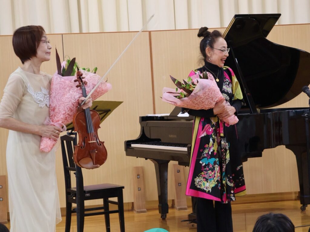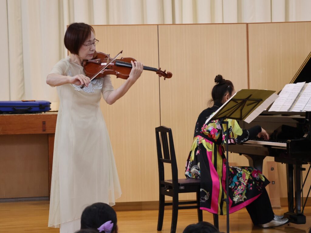 バイオリンとピアノの先生をお招きし、体育館で演奏会が開かれました。