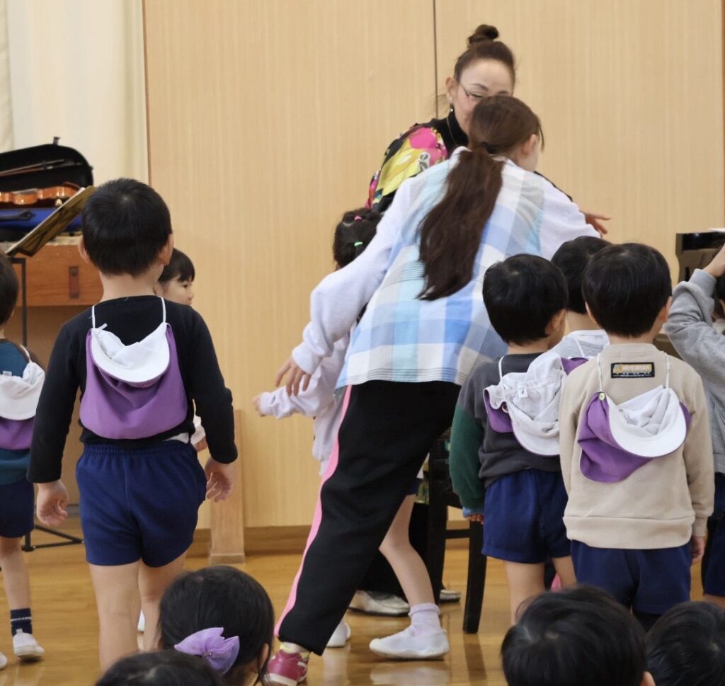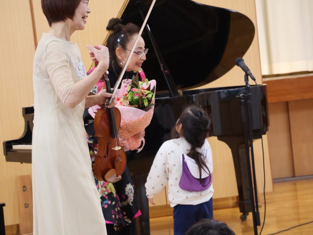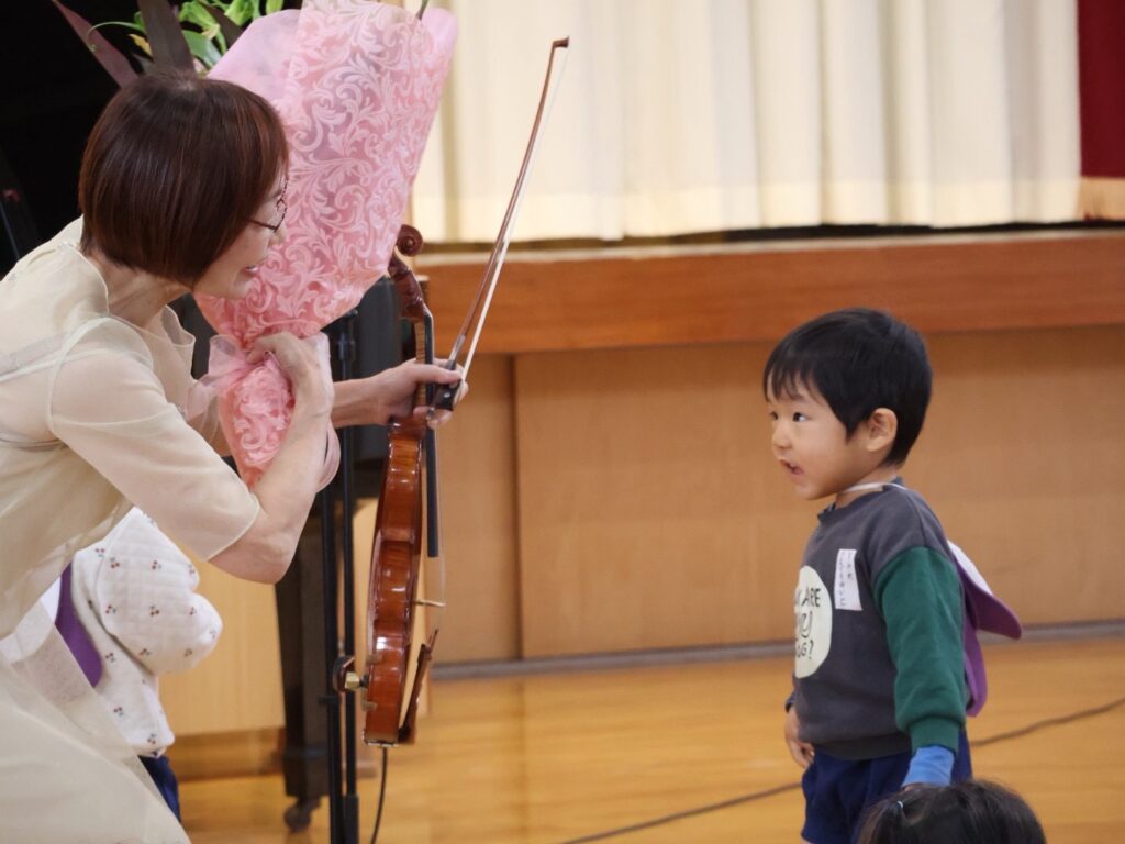 「明日はバイオリンの演奏会だよ、楽しみ」と、初めての演奏会にわくわくしていた年少さんも。園から「保護者の方もぜひご観覧ください」とのお声がけもあり、聴きに来られている方も多くいらっしゃいました。