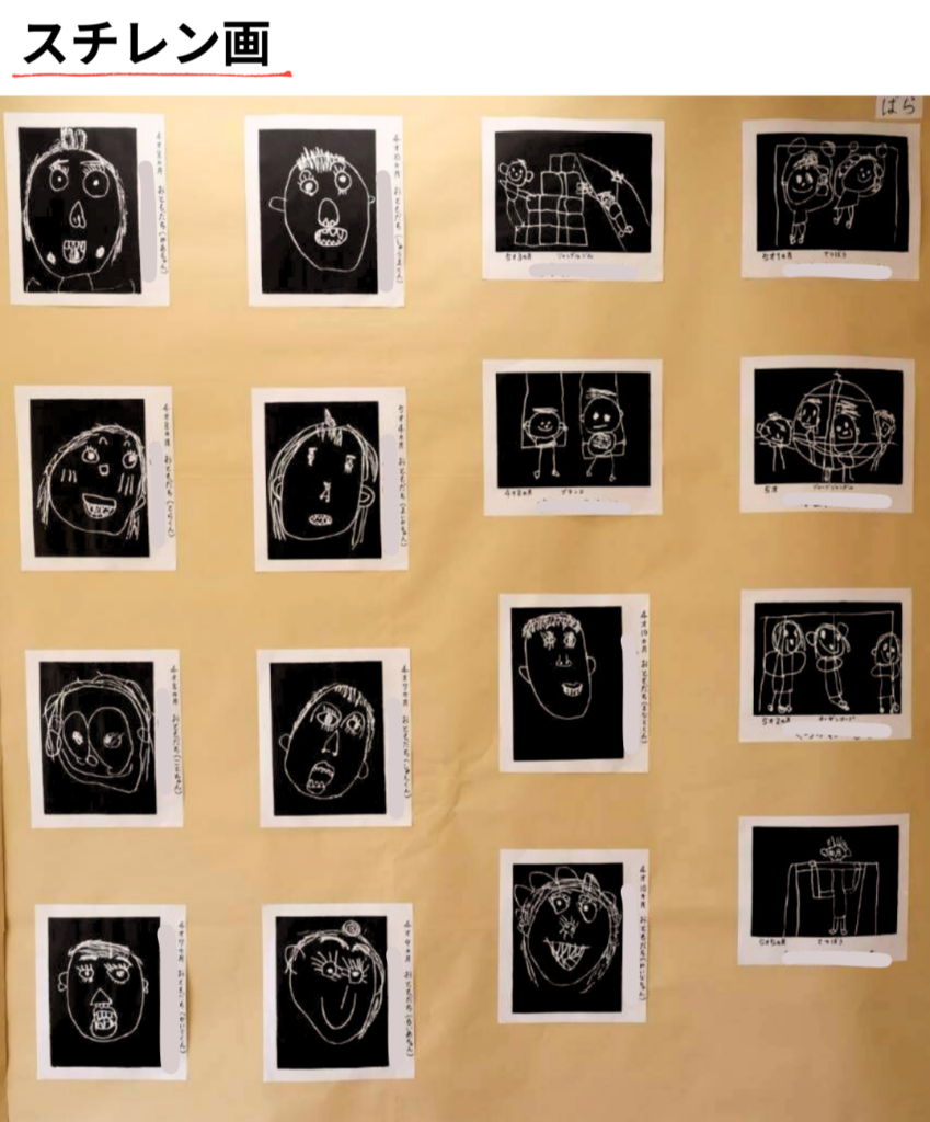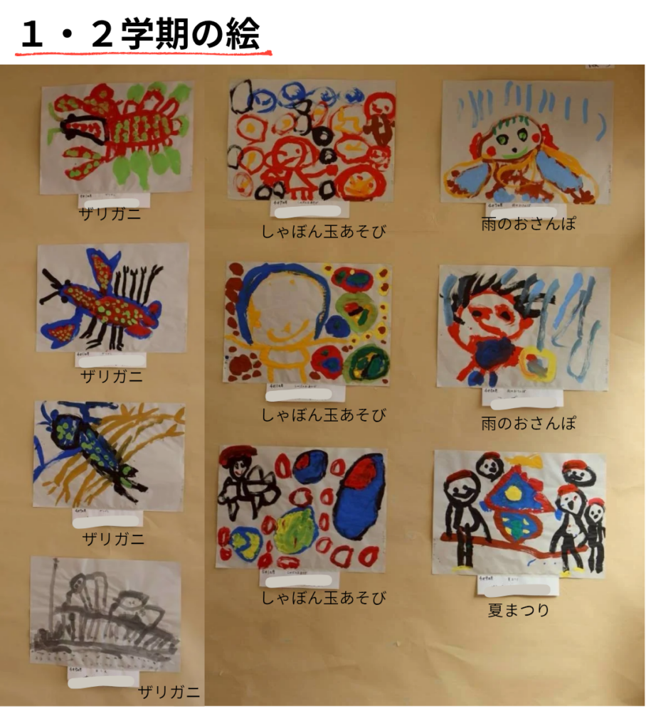 みんな自由に、自分が感じたままに描くので、のびのびとした作品が多いのが、ひかわ幼稚園のいいところだと思います。