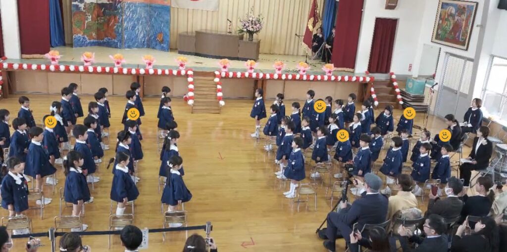 たくさんの拍手で迎えられ、年長のきく組、ゆり組の子ども達が入場します。